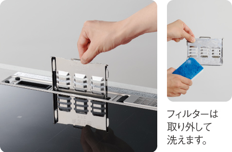 グリルを使ったときの煙やにおいの排気を抑制するフィルターです